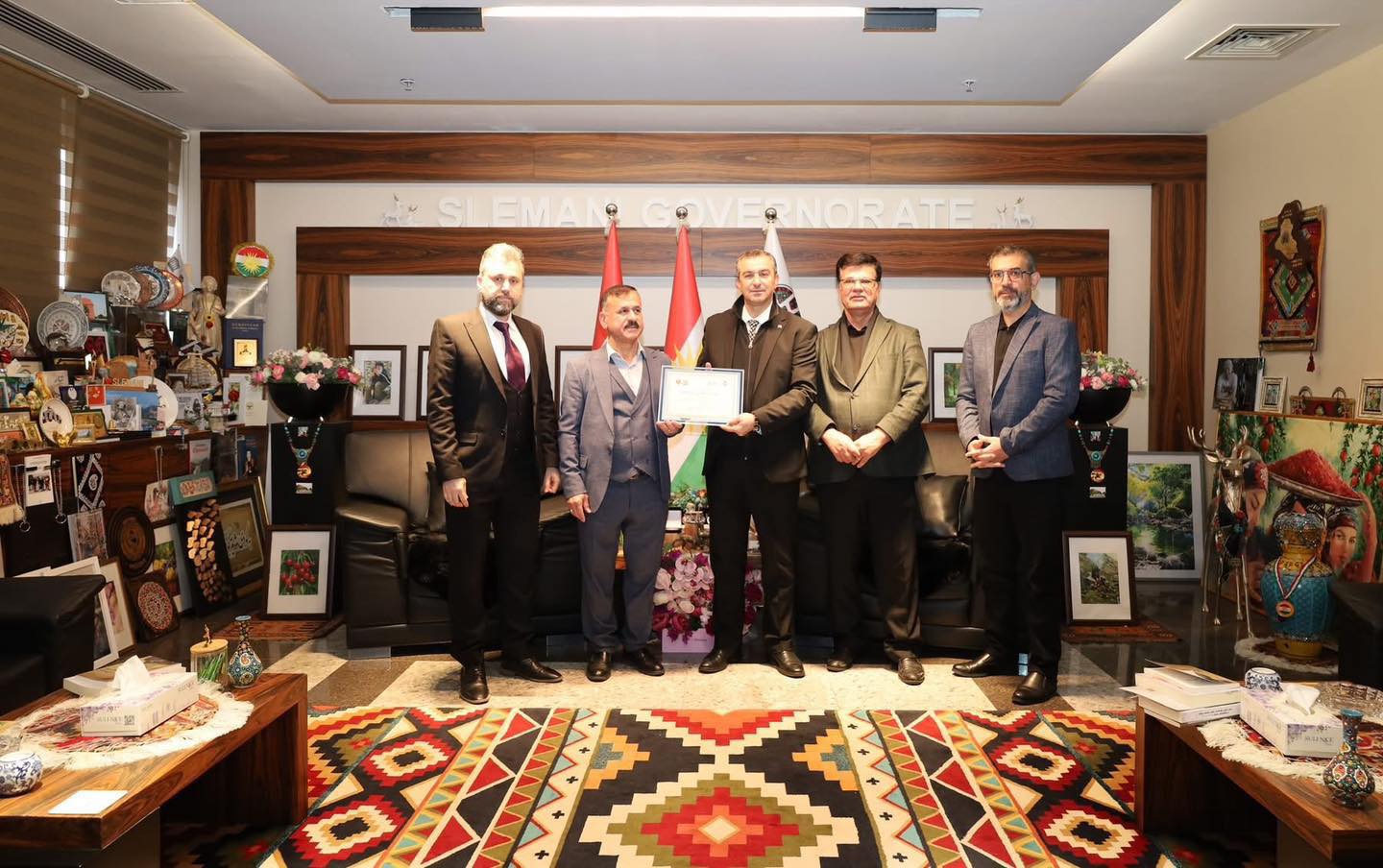 دوای ئەوەی بەڕێزان وەفدی پارێزگای سلێمانی و کوردستان بۆ حەڤدەیەمین فێستیڤاڵی نێودەوڵەتیی بەدرخان لە شاری کەتەنزارۆی ئیتاڵیا؛ بەڕێزان (مامۆستا حەسەن یاسین، پ.د.هێرش ڕەسوڵ موراد، پ.د.ئیبراهیم سەعید زمناکۆ و هونەرمەند زاهیر سدیق)، بەمەبەستی پێشکەشکردنی سوپاسنامە و بڕوانامەی فێستیڤاڵەکە بە پارێزگاری سلێمانی وەک پشتیوانێکی سەرەکیی فێستیڤاڵەکە، سەردانی پارێزگاری سلێمانییان کردبوو