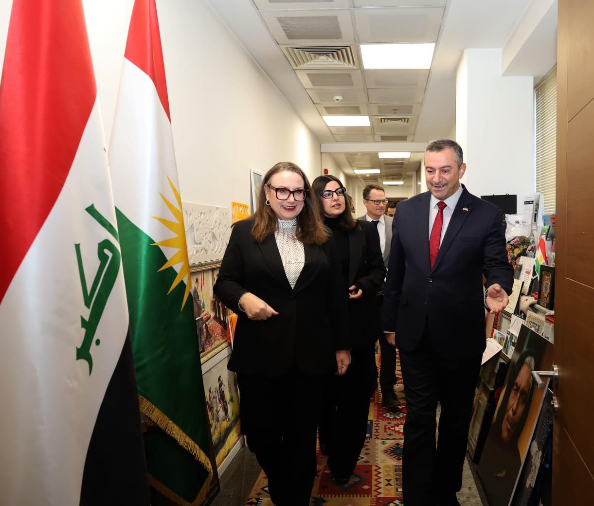 د.هەڤاڵ ئەبوبەکر پارێزگاری سلێمانی، لە دیوانی پارێزگادا، پێشوازیکرد لە بەڕێزان خاتوو وێندی گرین کونسوڵی گشتیی ولایەتە یەکگرتووەکانی ئەمریکا لە هەرێمی کوردستان و ئاندرۆ هەی بەرپرسی بەشی سیاسیی و وەفدی هاوڕێیان